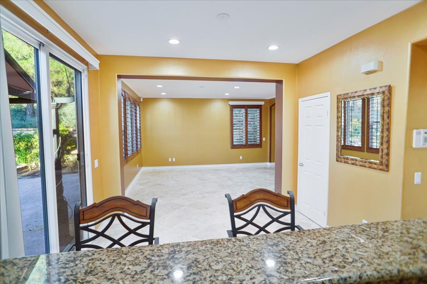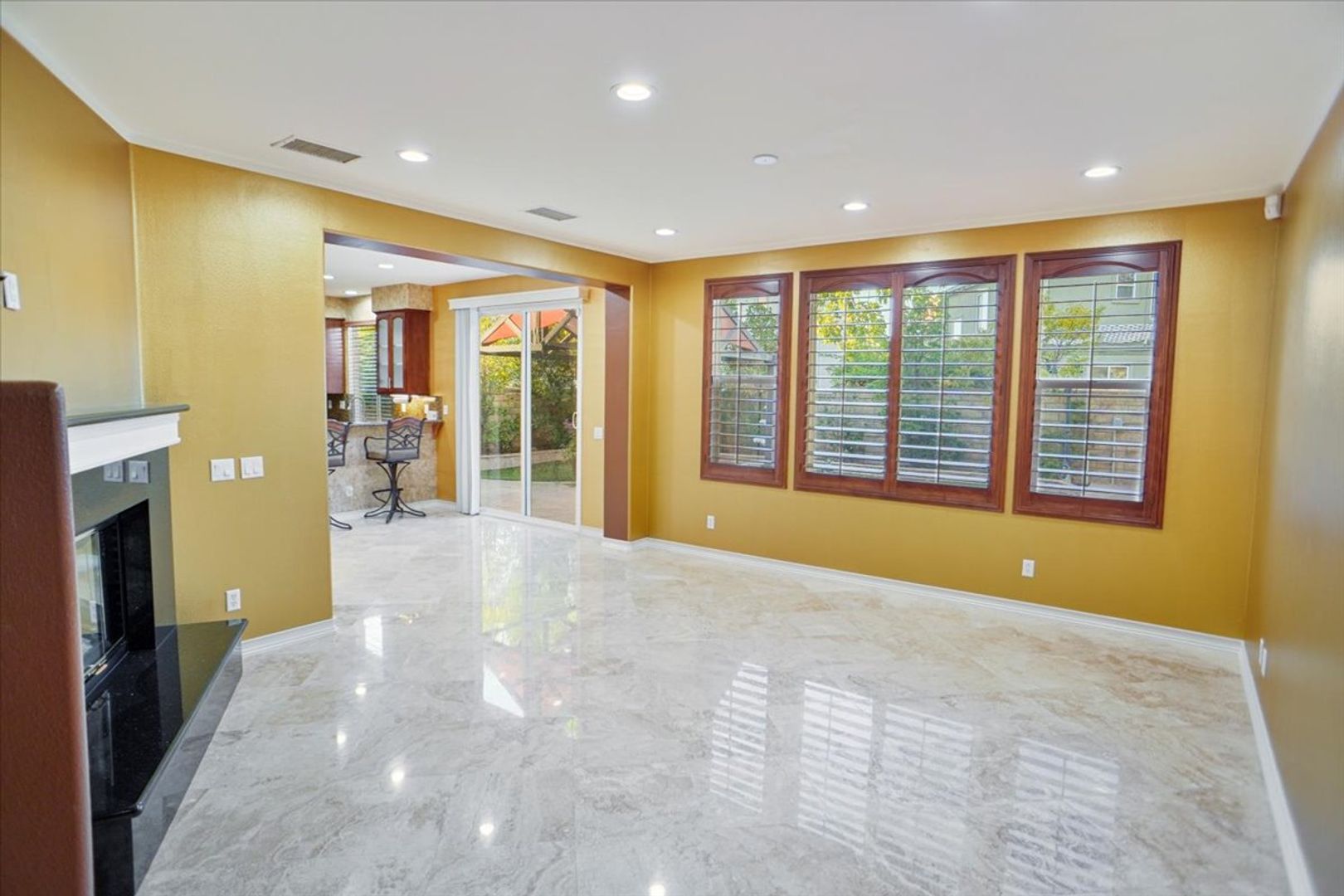 Welcome to this spacious 4-bedroom, 3-bathroom home nestled in the desirable community of Valencia with an extra long driveway. Built in 2004, this 2,116 sq. ft. property offers a blend of modern convenience and timeless style. The open floor plan features a well-appointed kitchen with granite countertops, breakfast bar, rich cabinetry, and stainless steel appliances, perfect for the home chef. The adjacent family room boasts a cozy fireplace with black rock, making it an ideal space for relaxation or entertaining guests. Wood shutters throughout, recessed lighting and custom paint.