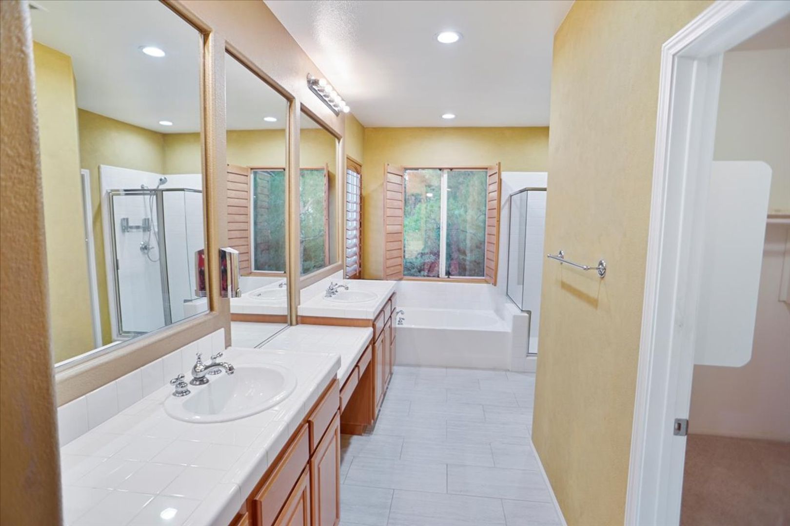 Upstairs, the expansive primary suite with ceiling fan that provides a tranquil retreat with an en-suite bathroom that includes dual sinks, a soaking tub, a separate shower and walk-in closet. The additional bedrooms are bright and spacious, offering plenty of room for family or guests. Hallway bathroom with a vanity and shower/tub. Separate laundry room.