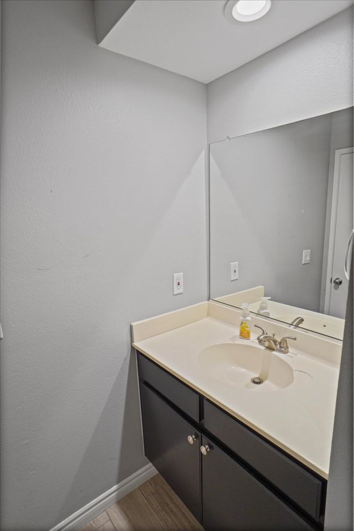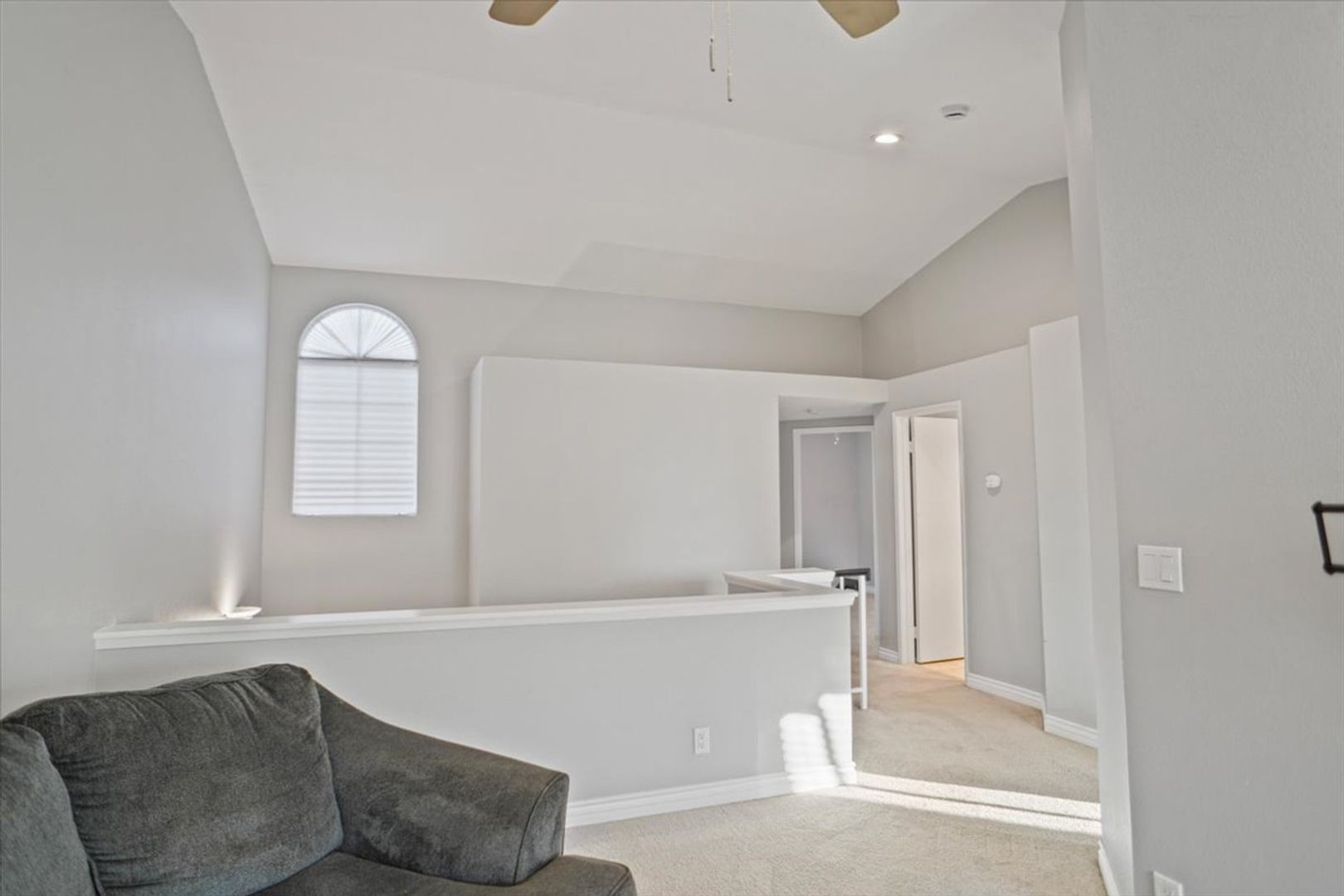 The downstairs also includes a convenient half bath with a vanity and custom paint throughout. Upstairs, you’ll find three spacious bedrooms, each with ceiling fans and mirrored wardrobes, plus a versatile loft area perfect for an office or playroom. The primary suite features a large closet and an attached bath with a vanity, sink, and shower/tub combination. The hall bathroom also includes a shower/tub combo.