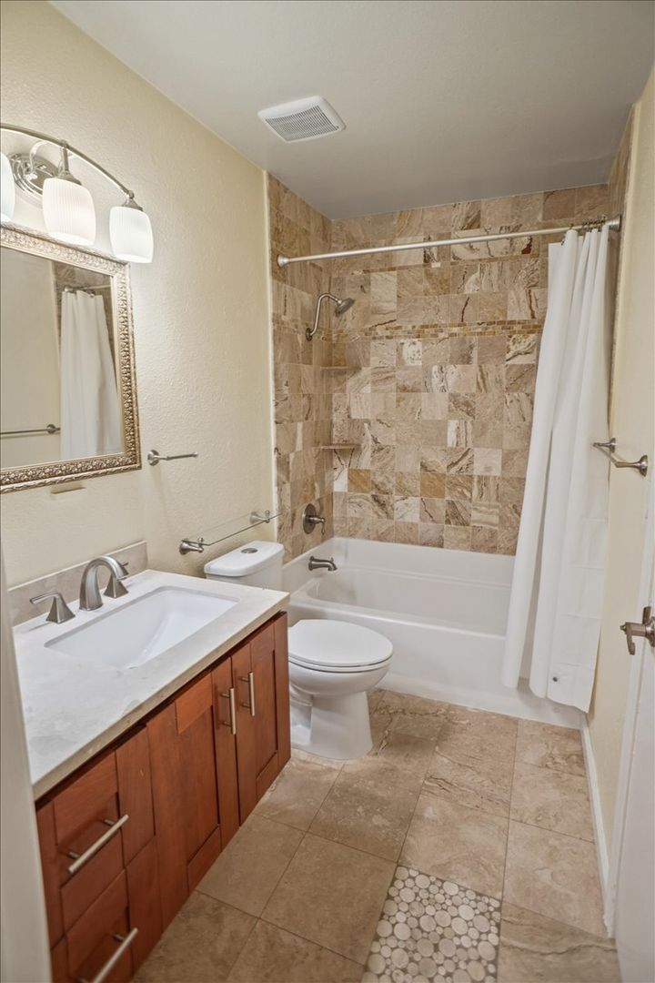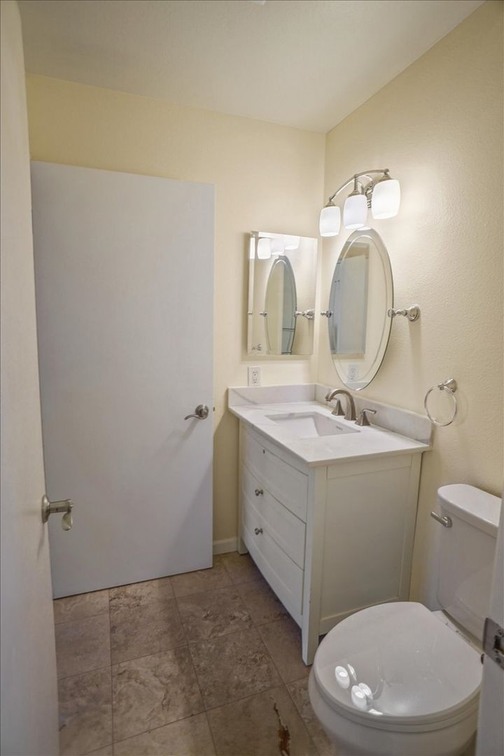 Both bedrooms are generously sized. The primary suite features a walk-in closet and a beautifully updated vanity with access to the tiled shower/tub. The hallway bathroom also includes an upgraded vanity and a shower/tub combo.