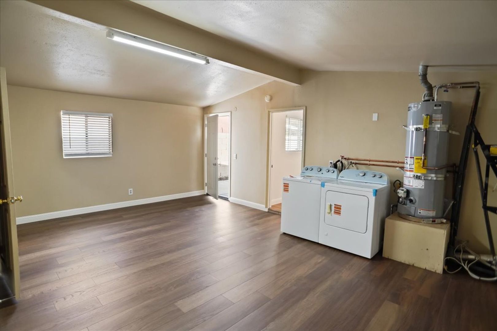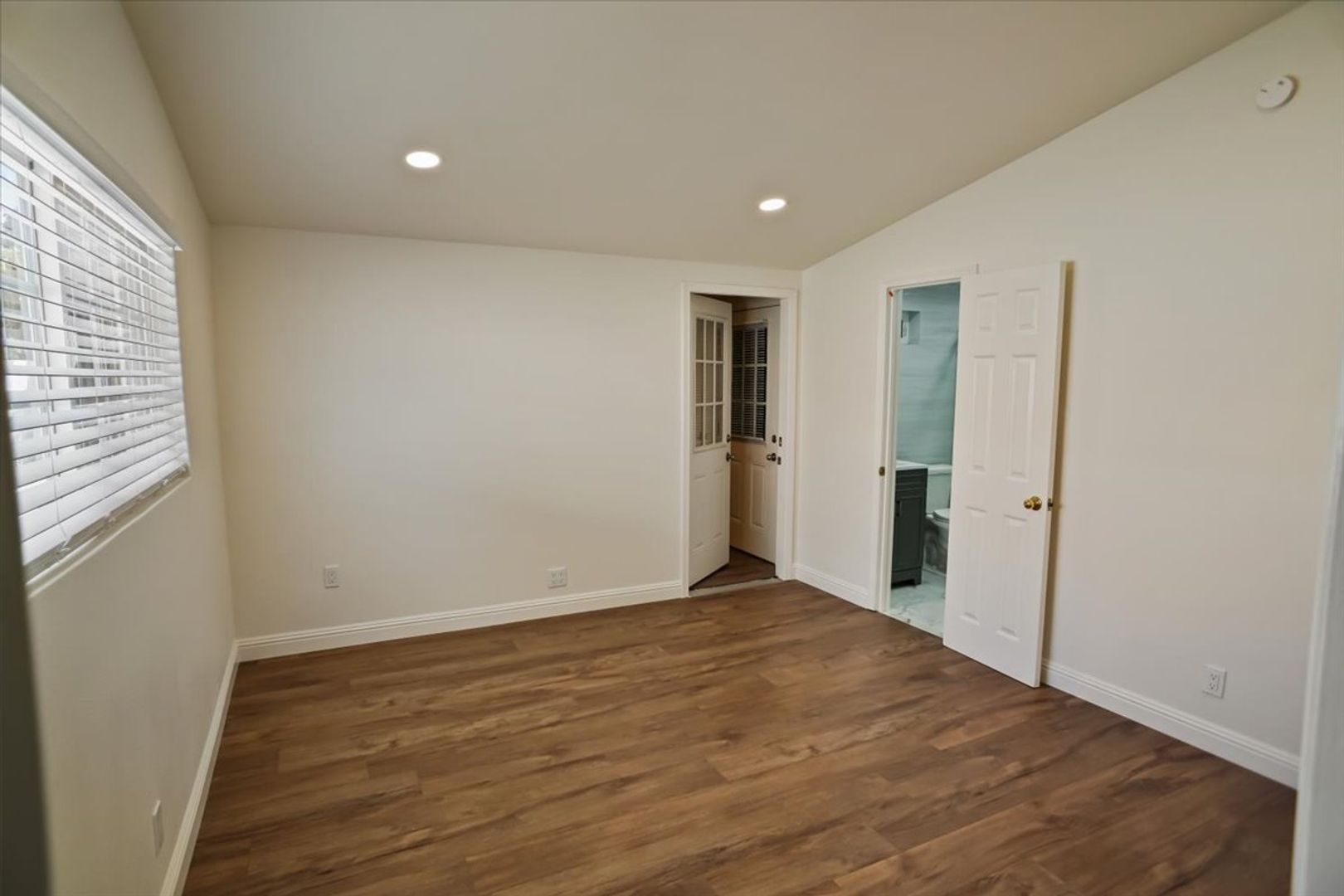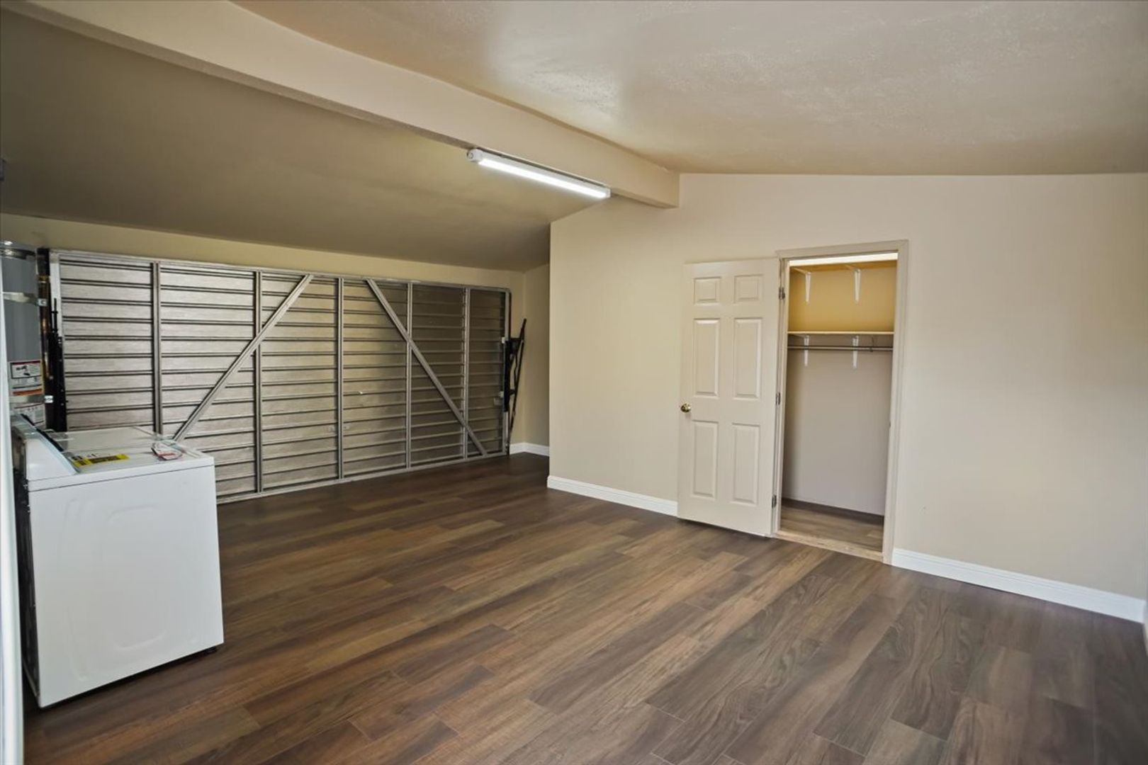 There are three bedrooms, including a primary suite with a huge walk-in closet that’s large enough to be used as a playroom, office, or exercise space—plus an additional closet for extra storage. Both bathrooms have been completely remodeled. The primary bathroom features glass barn-style shower doors, a beautifully tiled shower with pebble flooring, recessed lighting, and an upgraded vanity. The hallway bathroom offers a modern vanity, glass shower doors, tiled walls, and a new toilet.