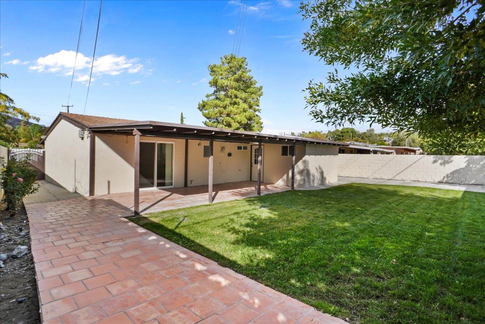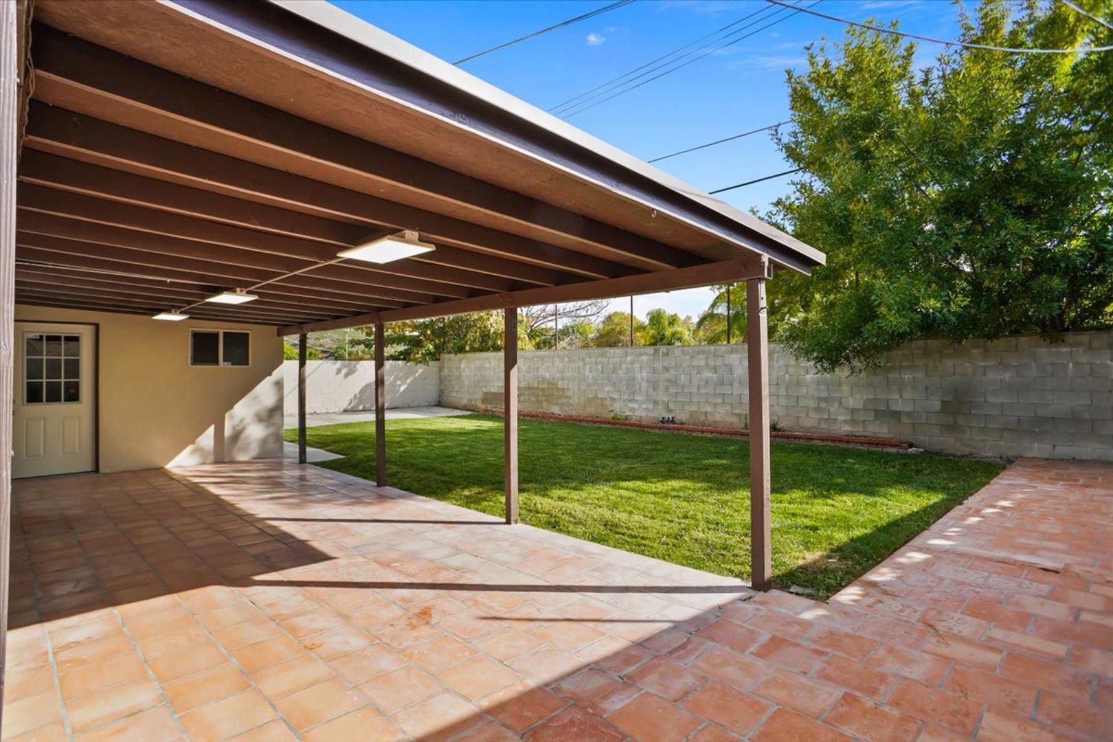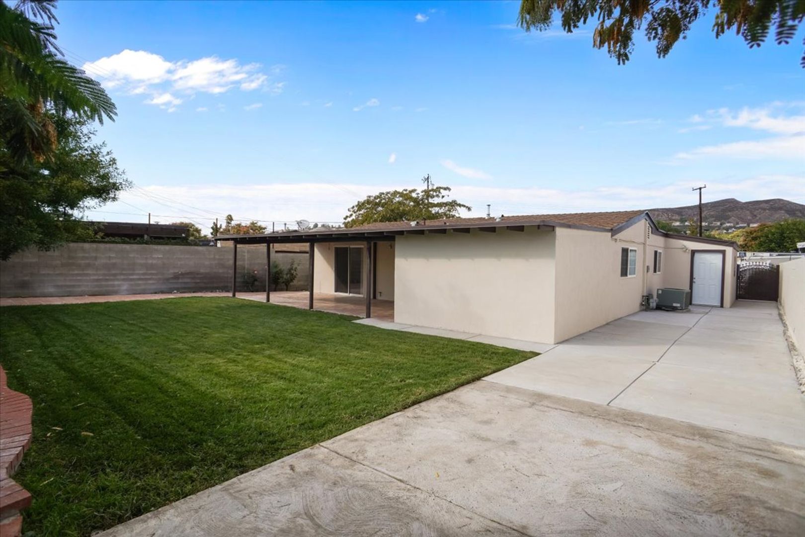 Additional upgrades include a new AC system, an attached garage with upgraded flooring, washer and dryer, and a storage closet. The private backyard is perfect for relaxing or entertaining, with a covered patio and sitting area.