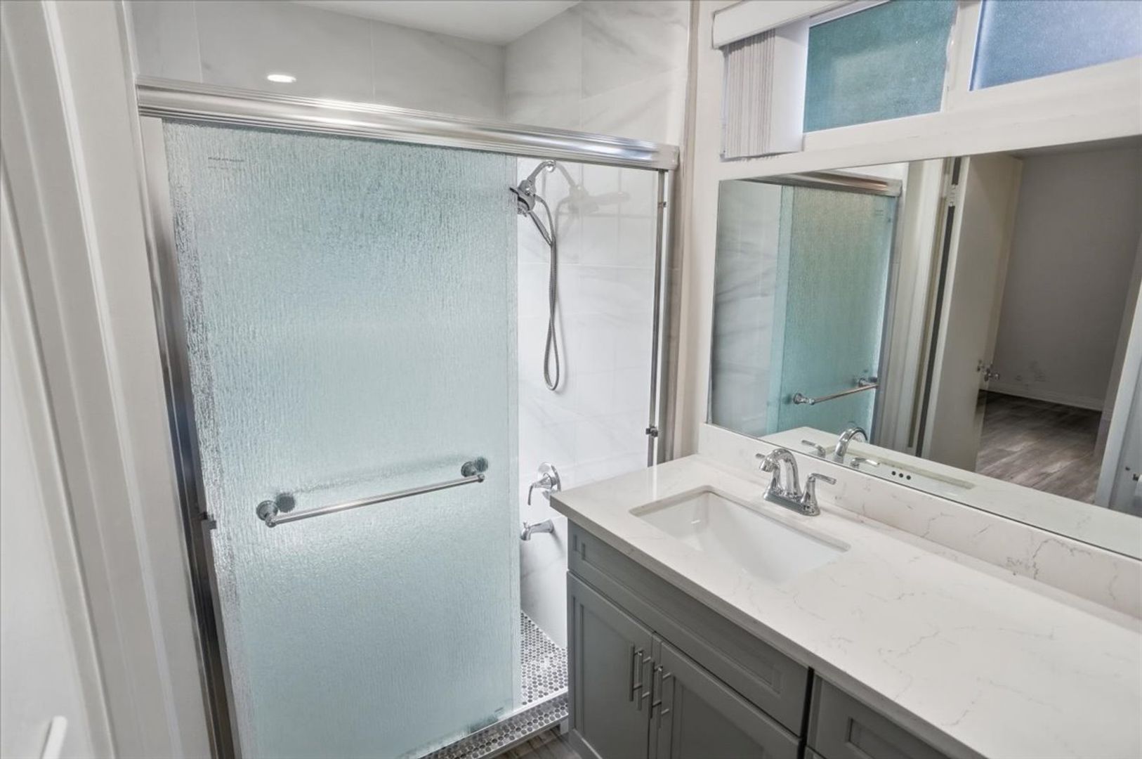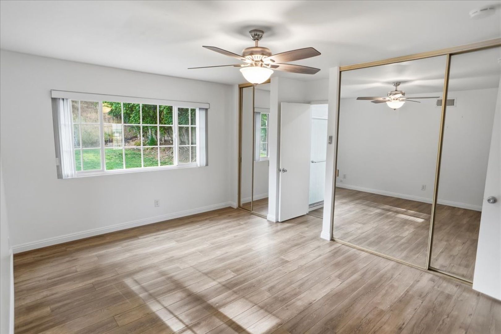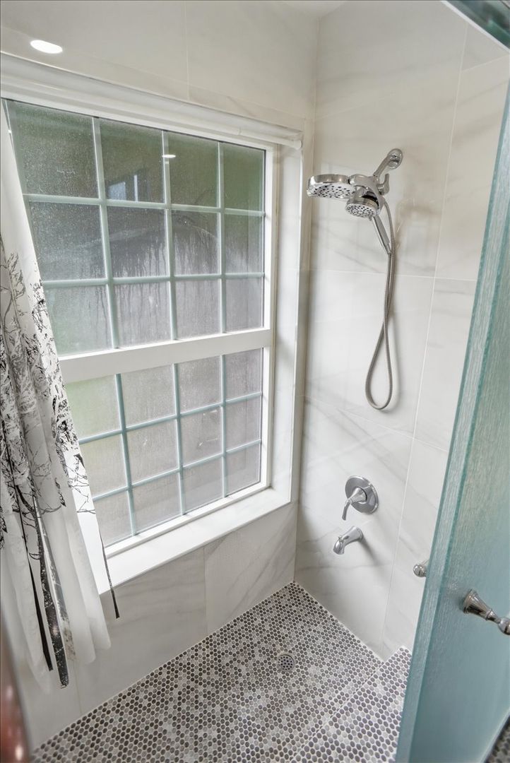 All three bedrooms are generously sized and include mirrored wardrobes and ceiling fans. The primary suite features an attached bathroom with an upgraded vanity and a beautifully designed walk-in shower with glass doors and designer tile. The hallway bathroom also offers modern upgrades and a shower/tub combination.