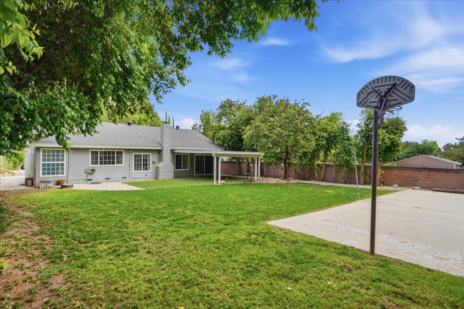 Outside, enjoy a large private backyard designed for relaxation and entertainment. Features include a covered patio, basketball court, expansive grassy area, and plenty of room for gatherings or play. The property also includes a 2-car attached garage with washer and dryer hookups, a long driveway, and convenient RV access.