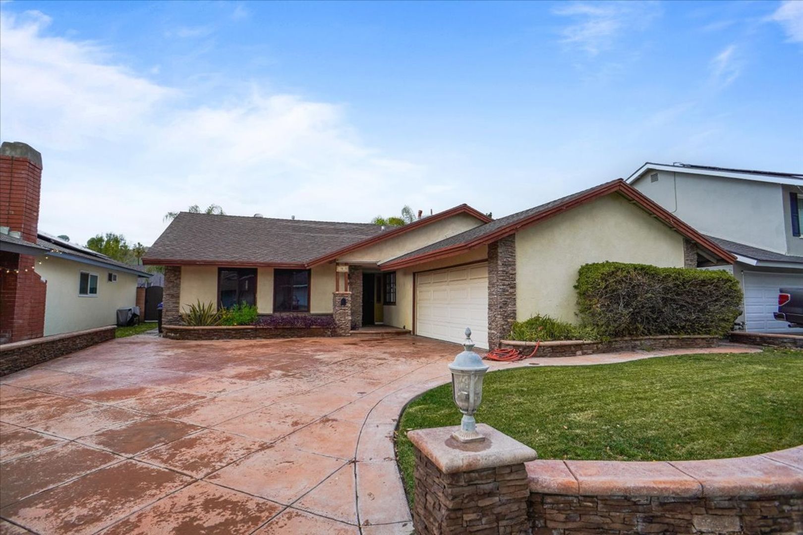 Welcome to this stunning single-story home featuring 3 bedrooms and 2 bathrooms, complete with a private pool and excellent curb appeal. The property offers a long driveway, a glass-beveled front door, and a 2-car attached garage.