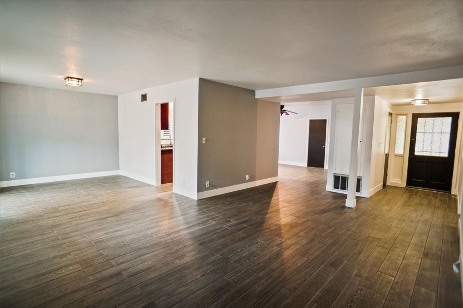 Two additional bedrooms are generously sized, and the upgraded hallway bathroom includes tile flooring and an updated vanity.