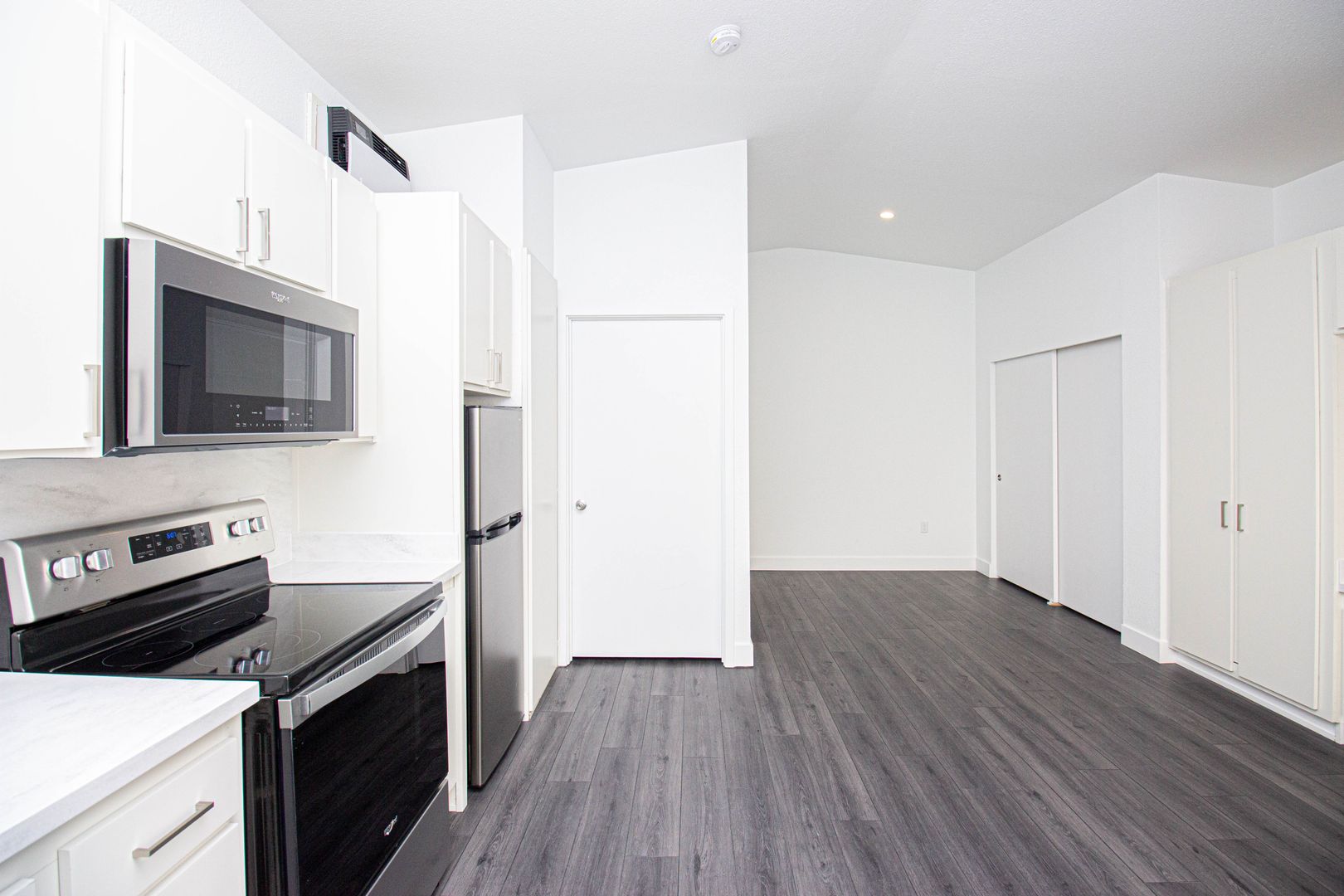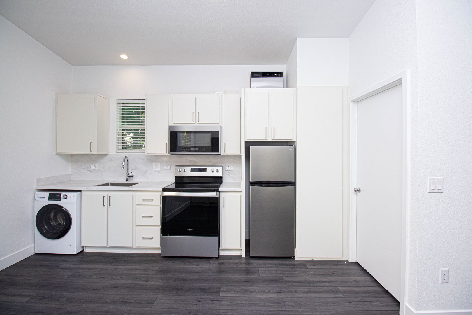 This beautifully designed studio ADU offers a stylish and contemporary living space with modern finishes throughout. The compact yet efficient layout includes a fully upgraded kitchen with a refrigerator and washer/dryer, a sleek bathroom with a walk-in shower and upgraded vanity, and a cozy bedroom area with a closet and built-in desk.
