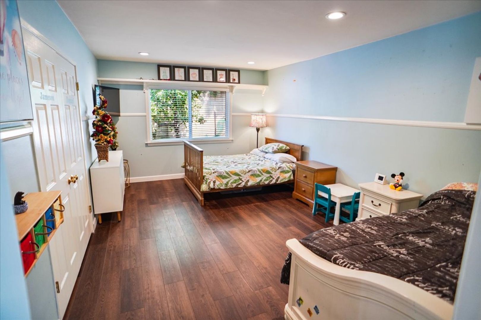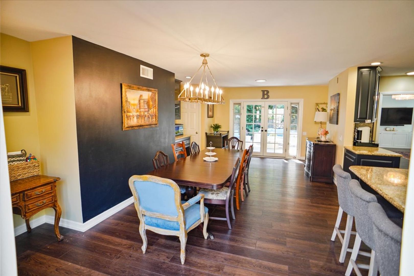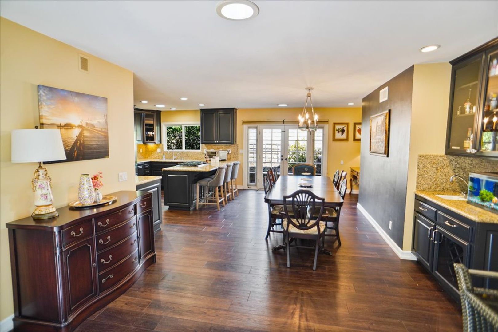 Step into the spacious living room, featuring a cozy fireplace and elegant built-in shelving. The modern kitchen is a chef’s delight, complete with granite countertops, stainless steel appliances, and ample cabinetry. The adjacent dining area flows seamlessly to the backyard, perfect for entertaining guests.
