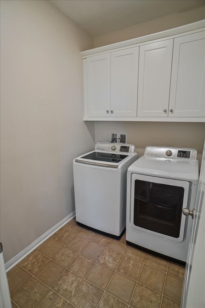 A dedicated upstairs laundry room offers a washer, dryer, and built-in cabinetry for added convenience. Additional highlights include a 2-car attached garage and energy-efficient solar panels to help reduce utility costs.