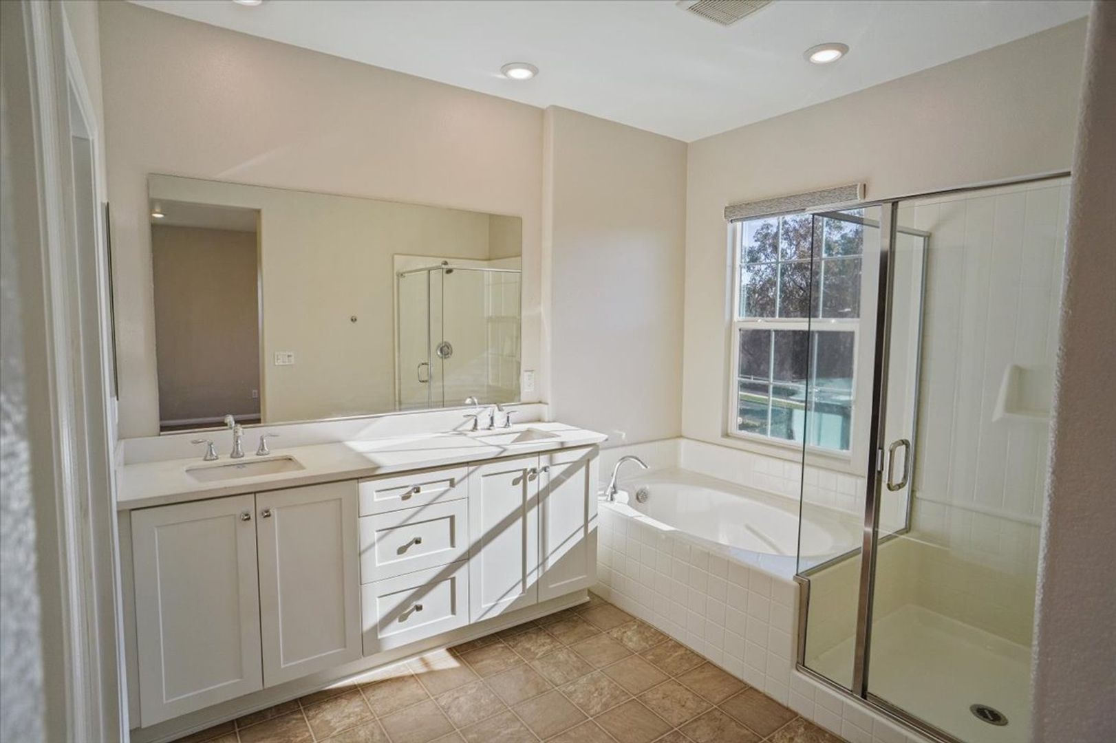 Upstairs, you’ll find three spacious bedrooms with pleasant views. The primary suite features recessed lighting, a luxurious ensuite bathroom with dual sinks, an upgraded vanity, a separate soaking tub and shower, and a large walk-in closet. The hallway bathroom includes an upgraded vanity and a shower/tub combination.