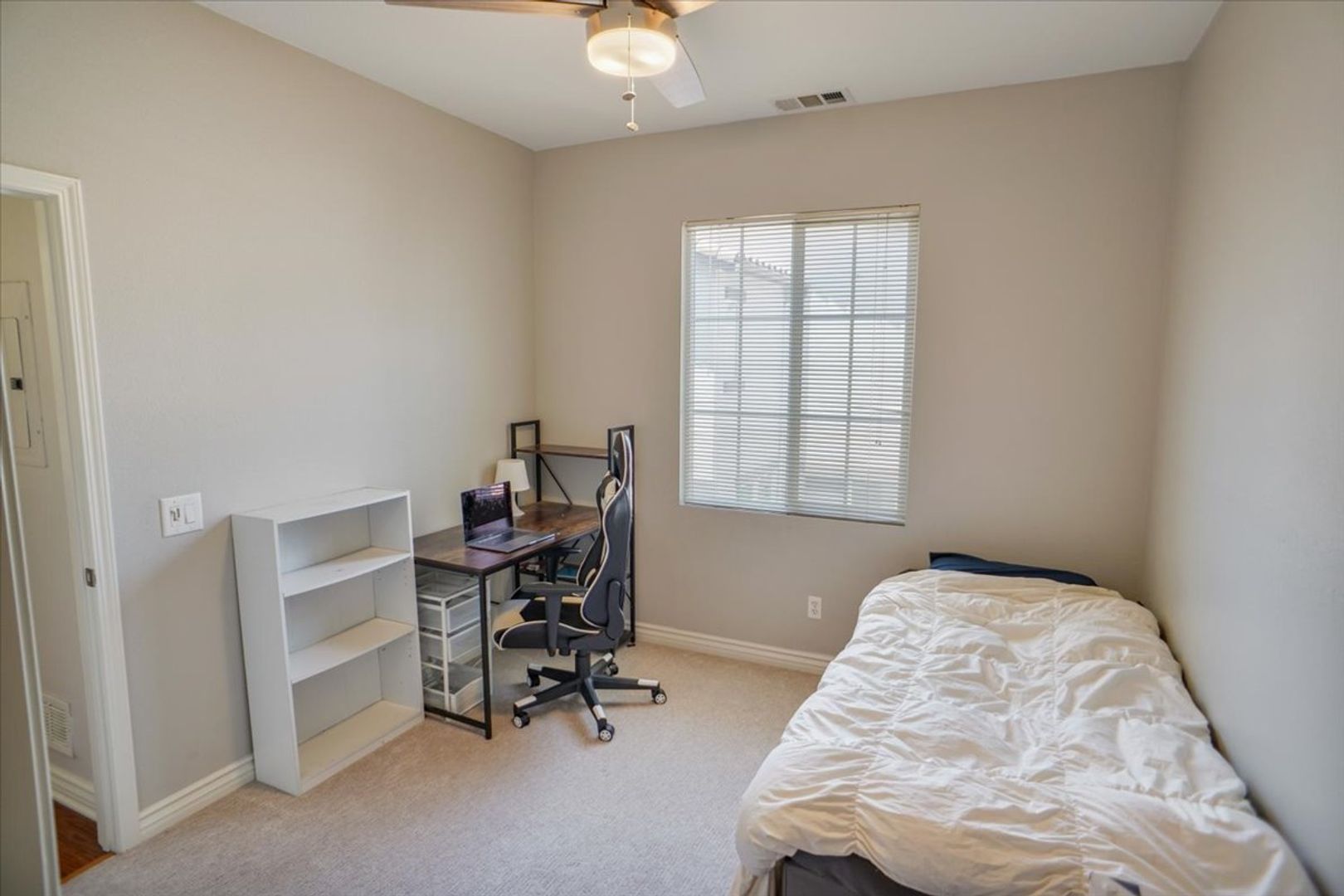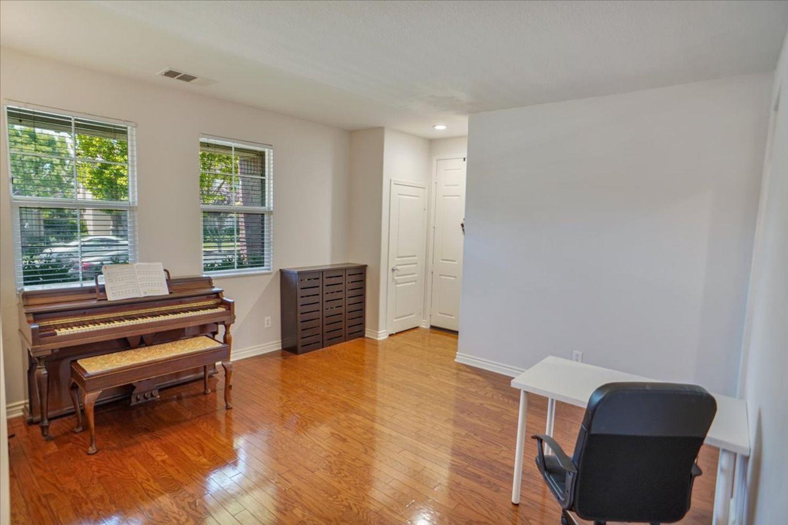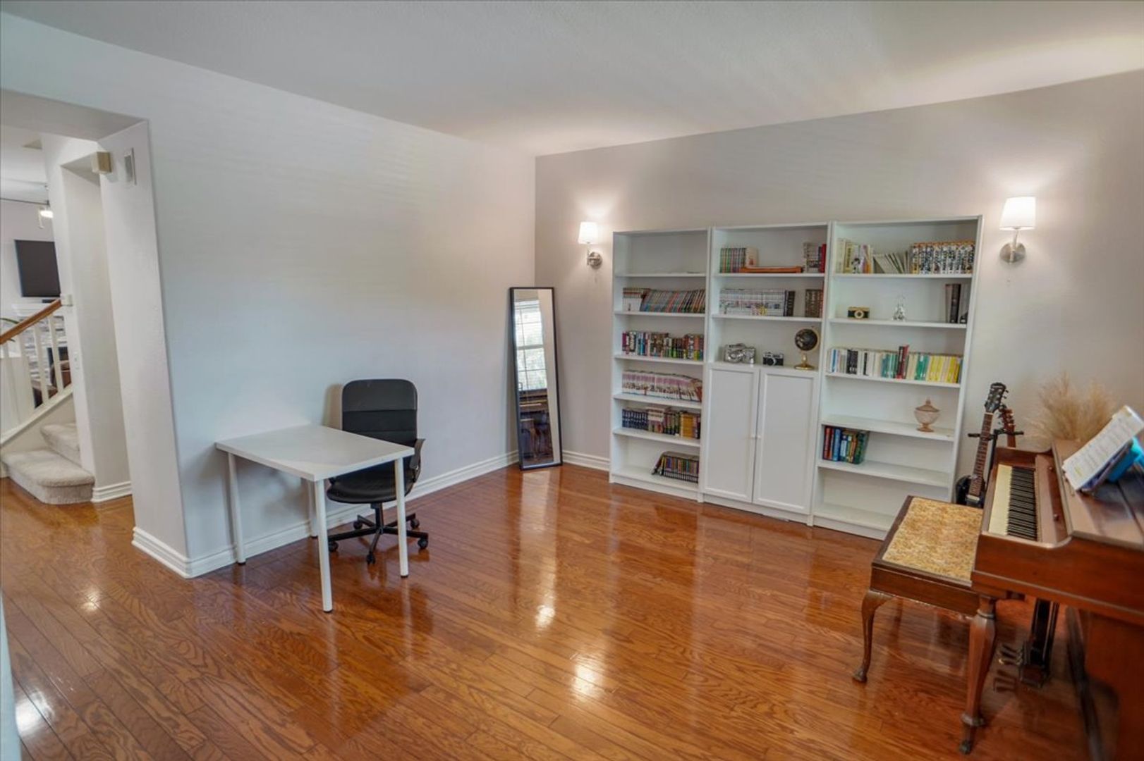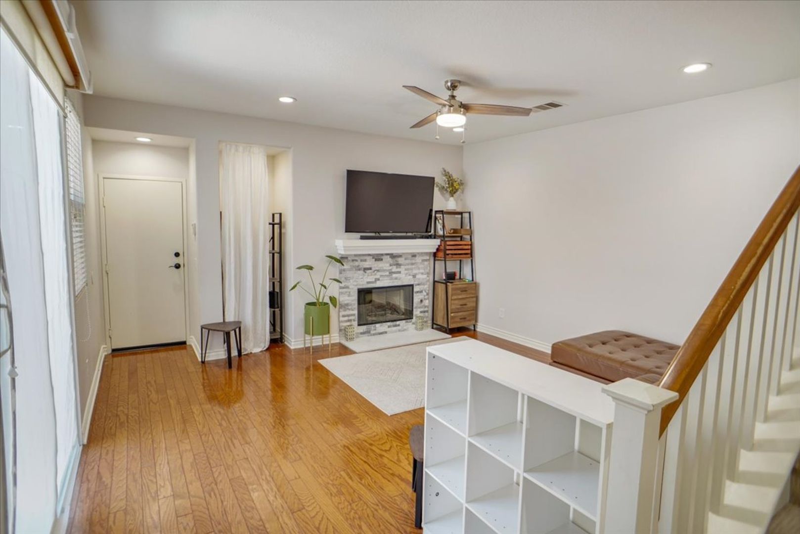 This beautifully maintained property offers 3 bedrooms and 3 bathrooms in the highly desirable Creekside community. The home features a spacious living room with wood flooring throughout (no carpet) and abundant natural light. The upgraded kitchen includes white cabinetry, recessed lighting, stainless steel appliances, a window over the sink, granite countertops, and a stylish subway tile backsplash. Adjacent to the kitchen is a dining area with an upgraded light fixture and a cozy family room featuring a ceiling fan, recessed lighting, and a tiled fireplace. A sliding glass door leads to the inviting backyard area, and an attached two-car garage provides convenient access.