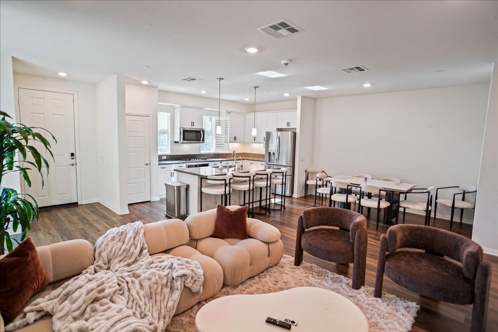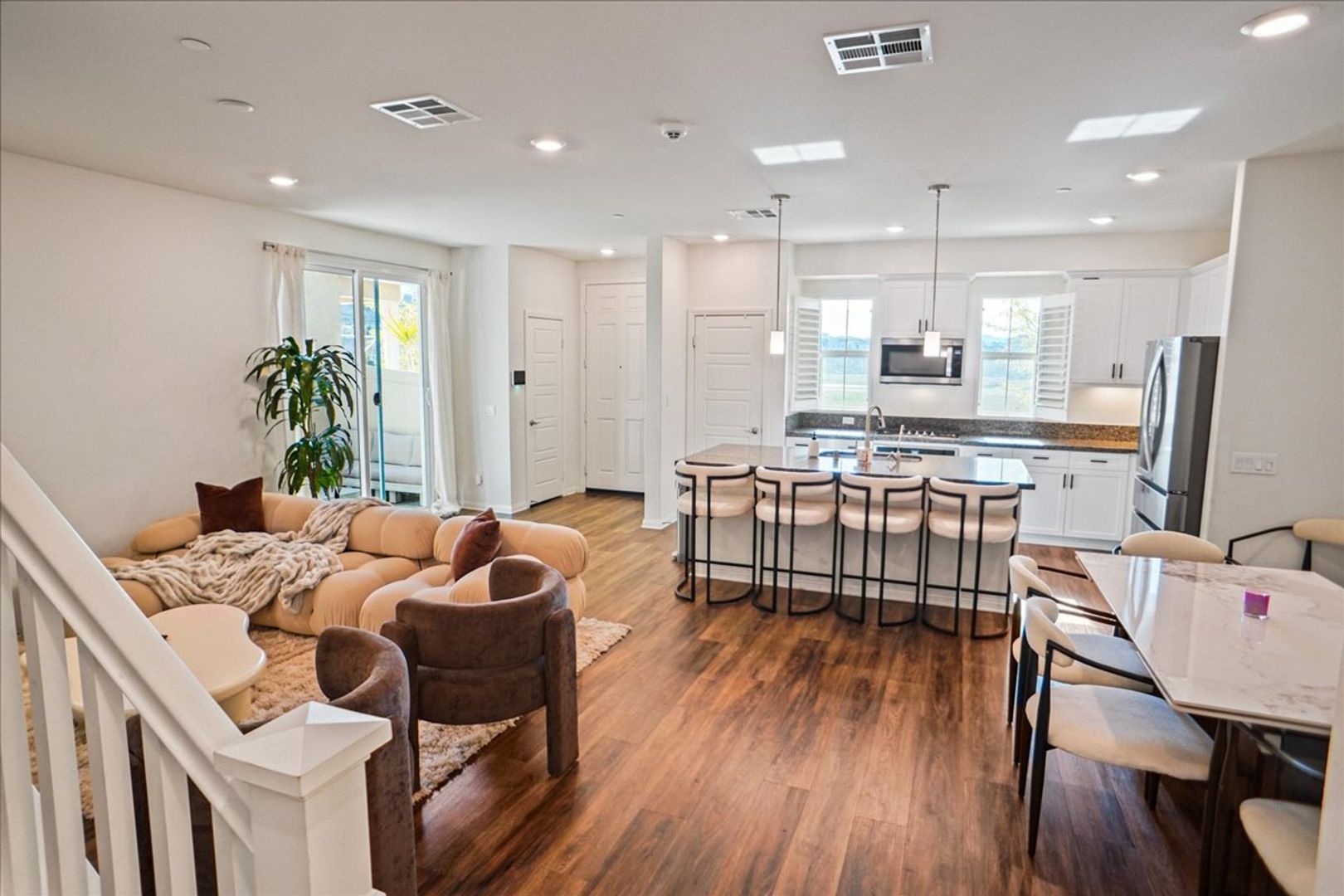 Step outside through the sliding glass door to a low-maintenance backyard with a cozy sitting area — ideal for relaxing or entertaining. The home also includes a two-car attached garage.
